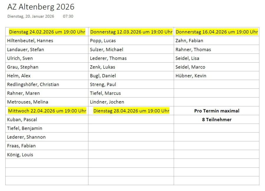 Pro Übung sind nur 8 Teilnehmer möglich! Bitte beachtet die Termine!
